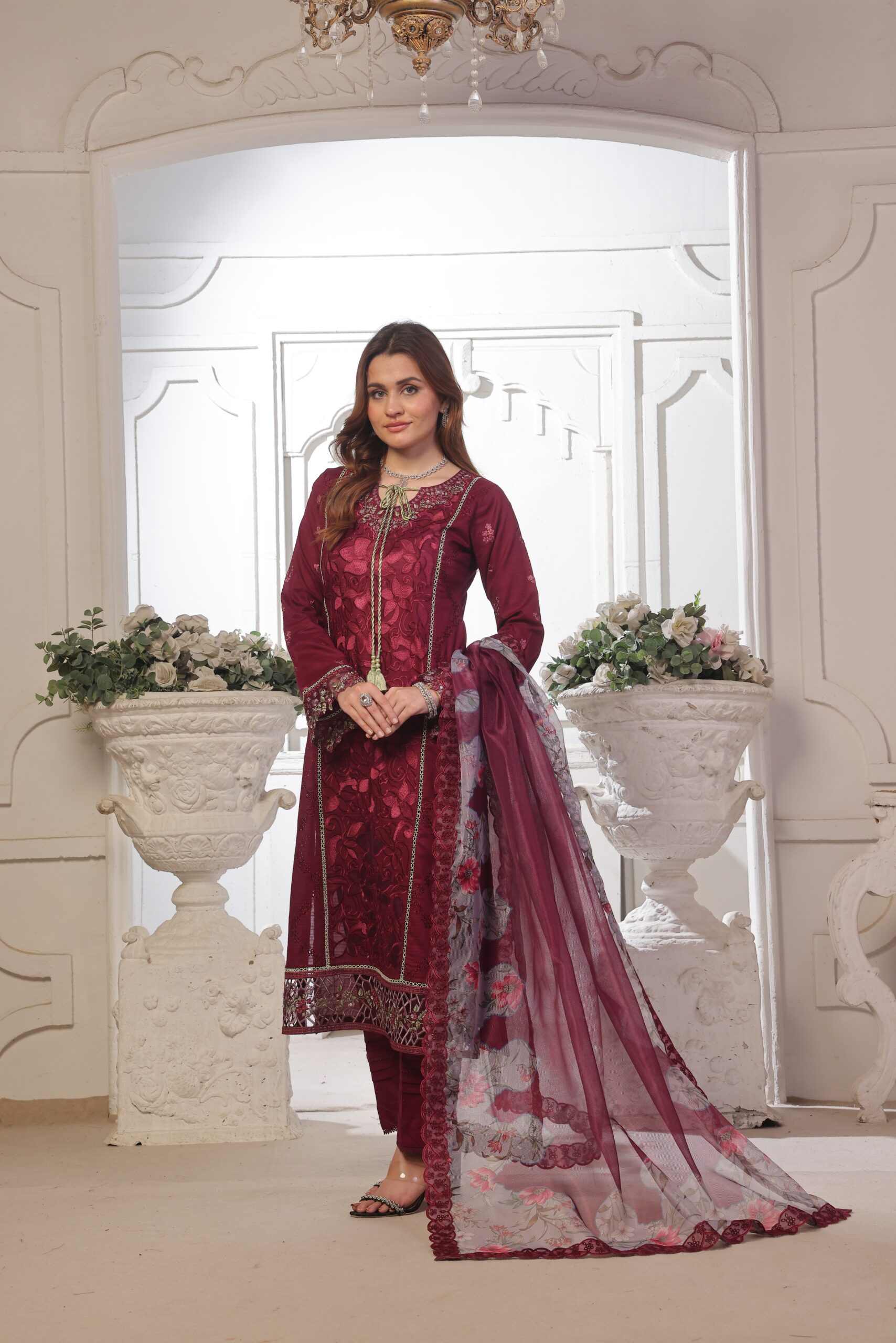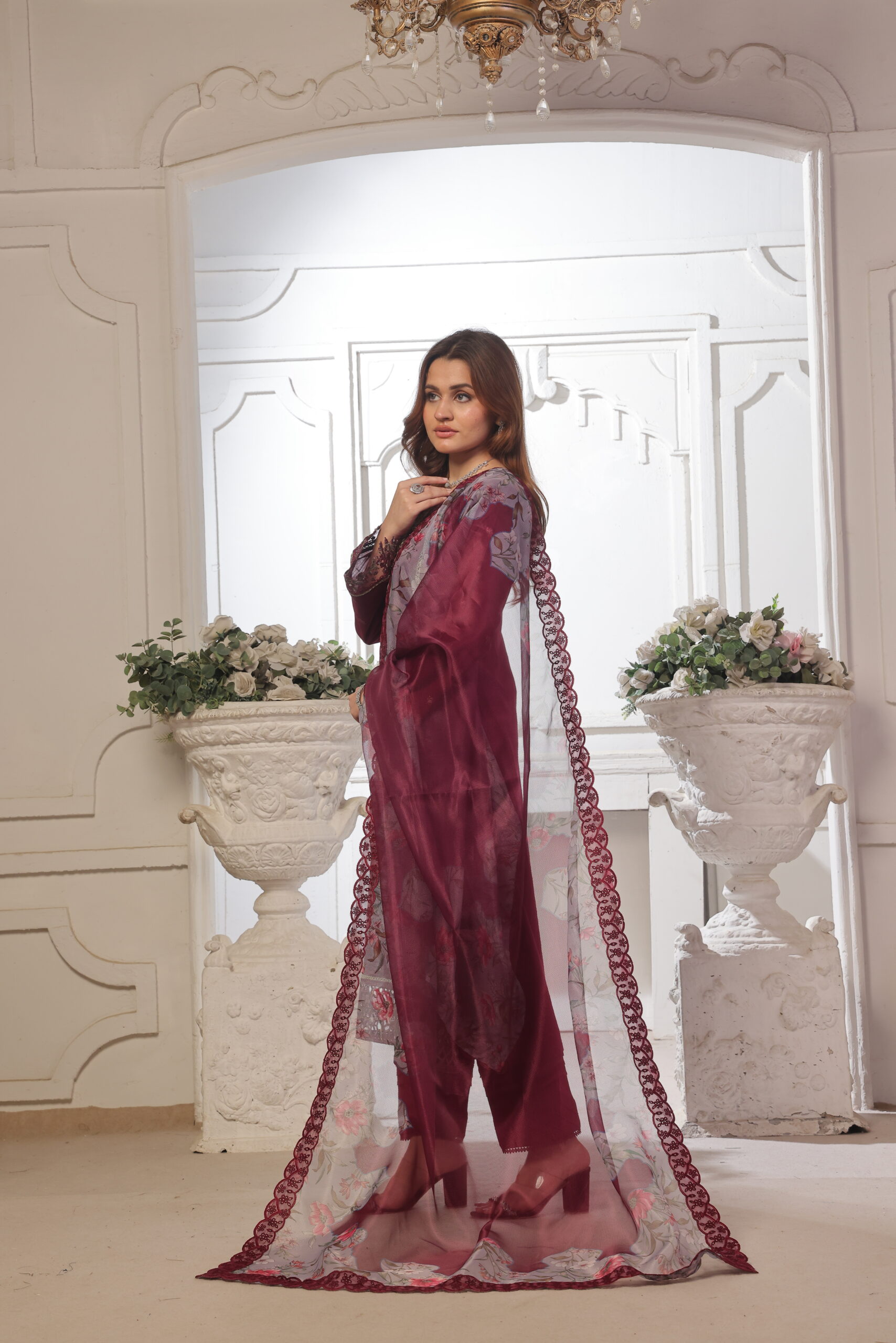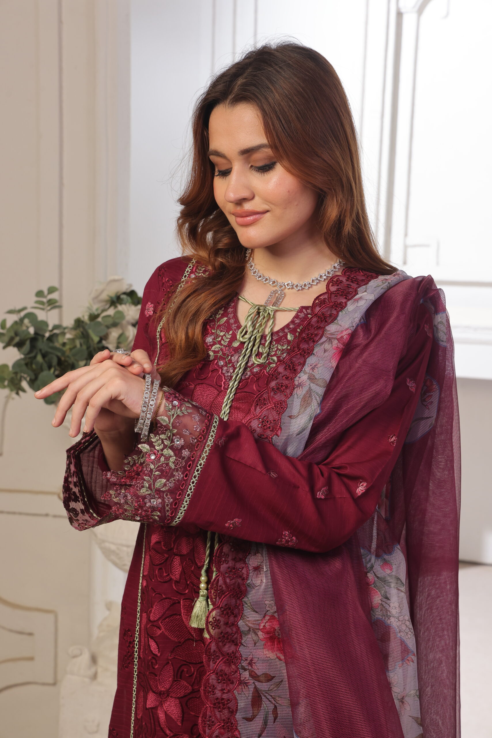 Opulent Maroon Embroidered Lawn Unstitched Suit