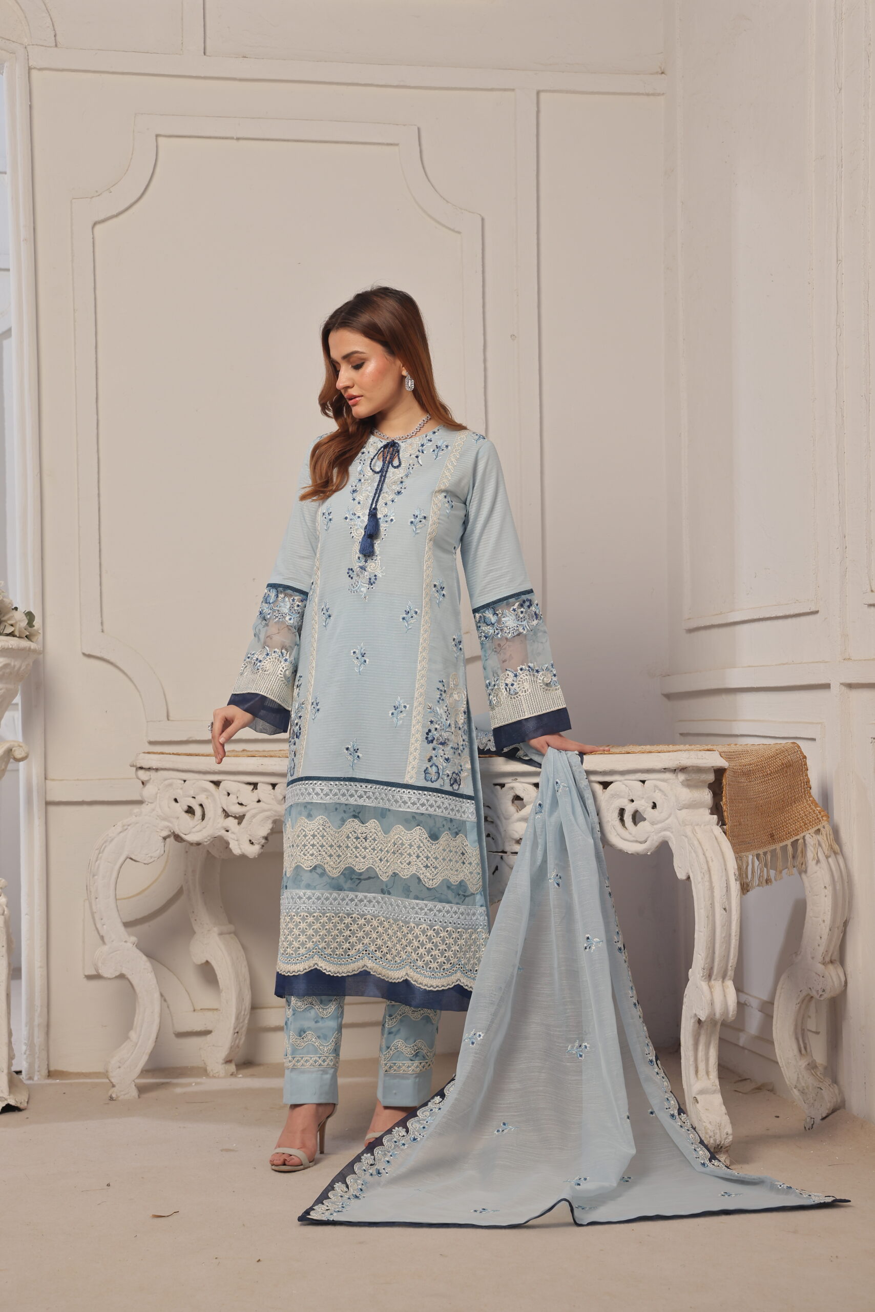 Cloud Blue Embroidered Lawn Unstitched Suit