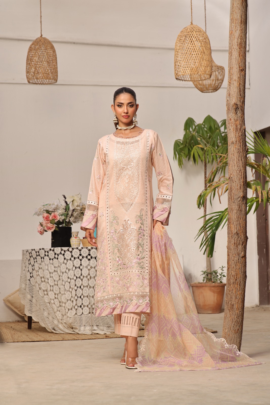 Peach Blush Embroidered Unstitched Suit