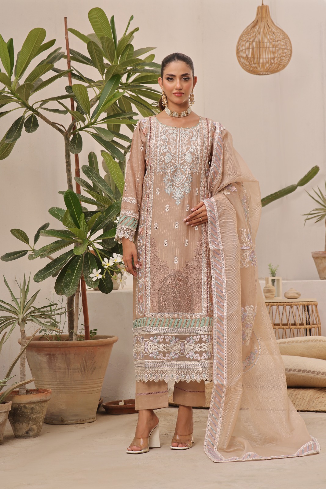 Warm Beige Sand Embroidered Lawn Unstitched Suit