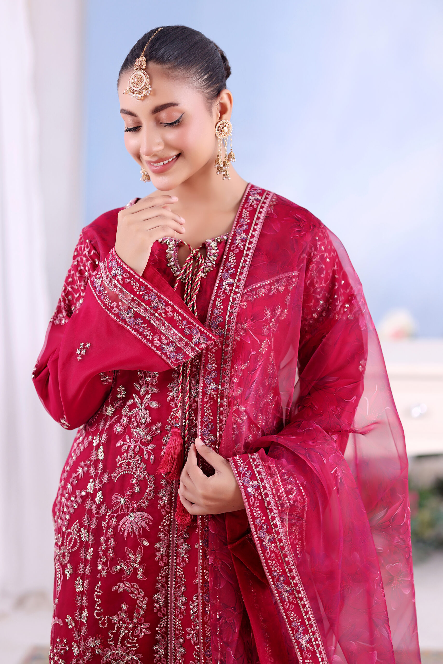Dupatta Fabric: Organza, with embroidered borders.