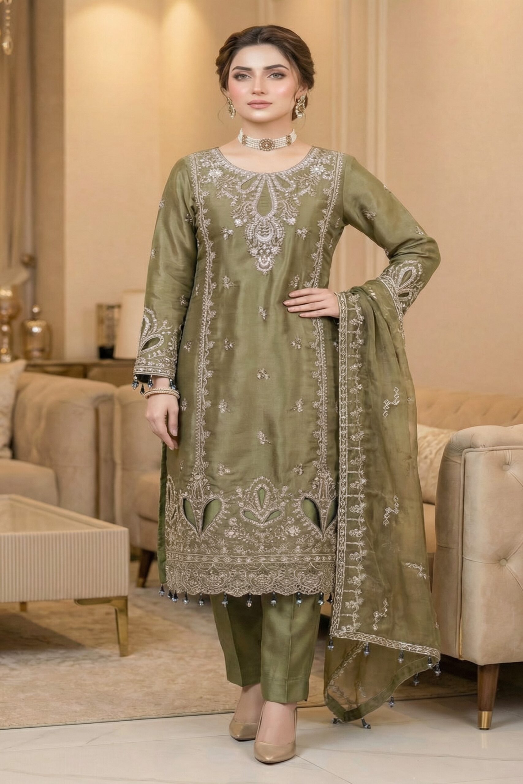 Sage Olive Embroidered Lawn Unstitched Suit