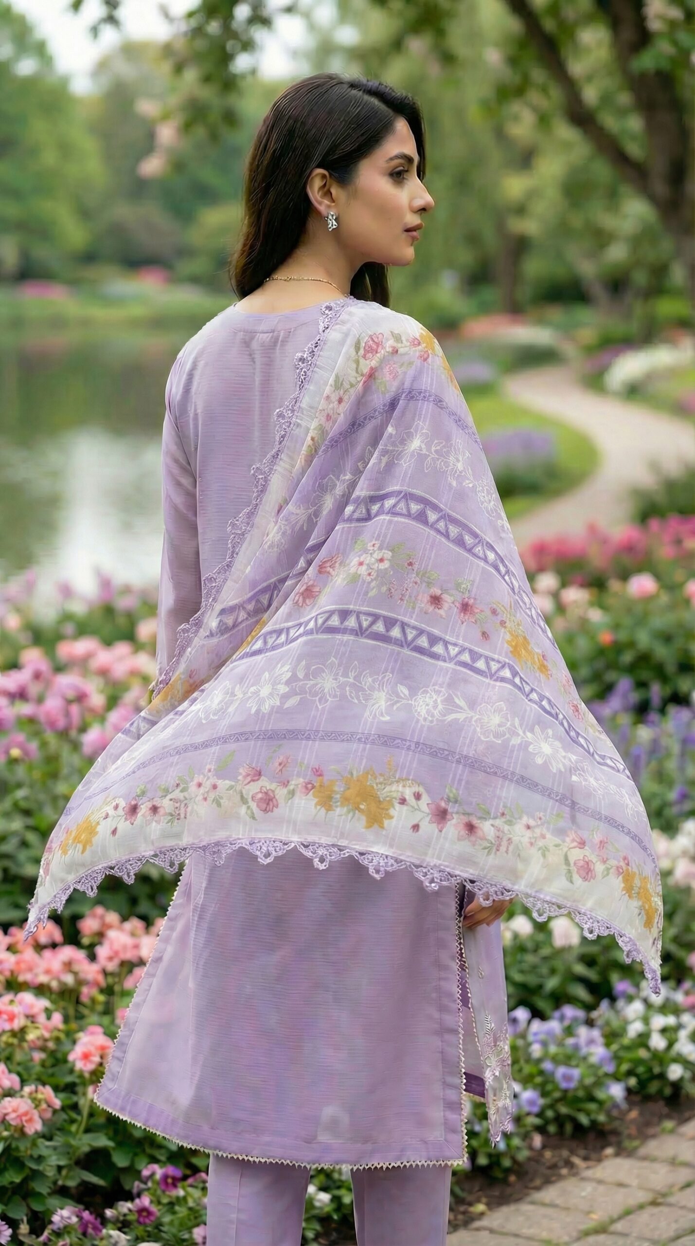 It comes with a beautiful lawn trouser that will keep you comfortable during hot weather conditions. The attire has also been accompanied with a beautiful lawn dupatta which will complement the overall look.
