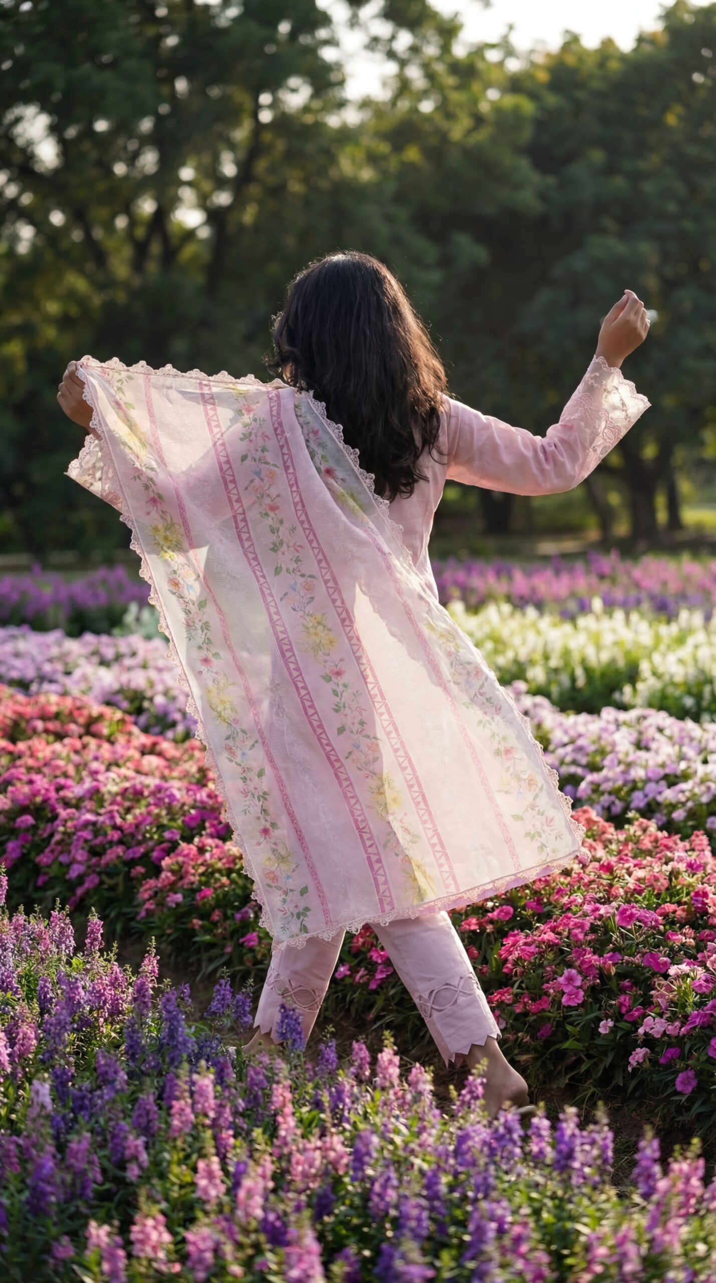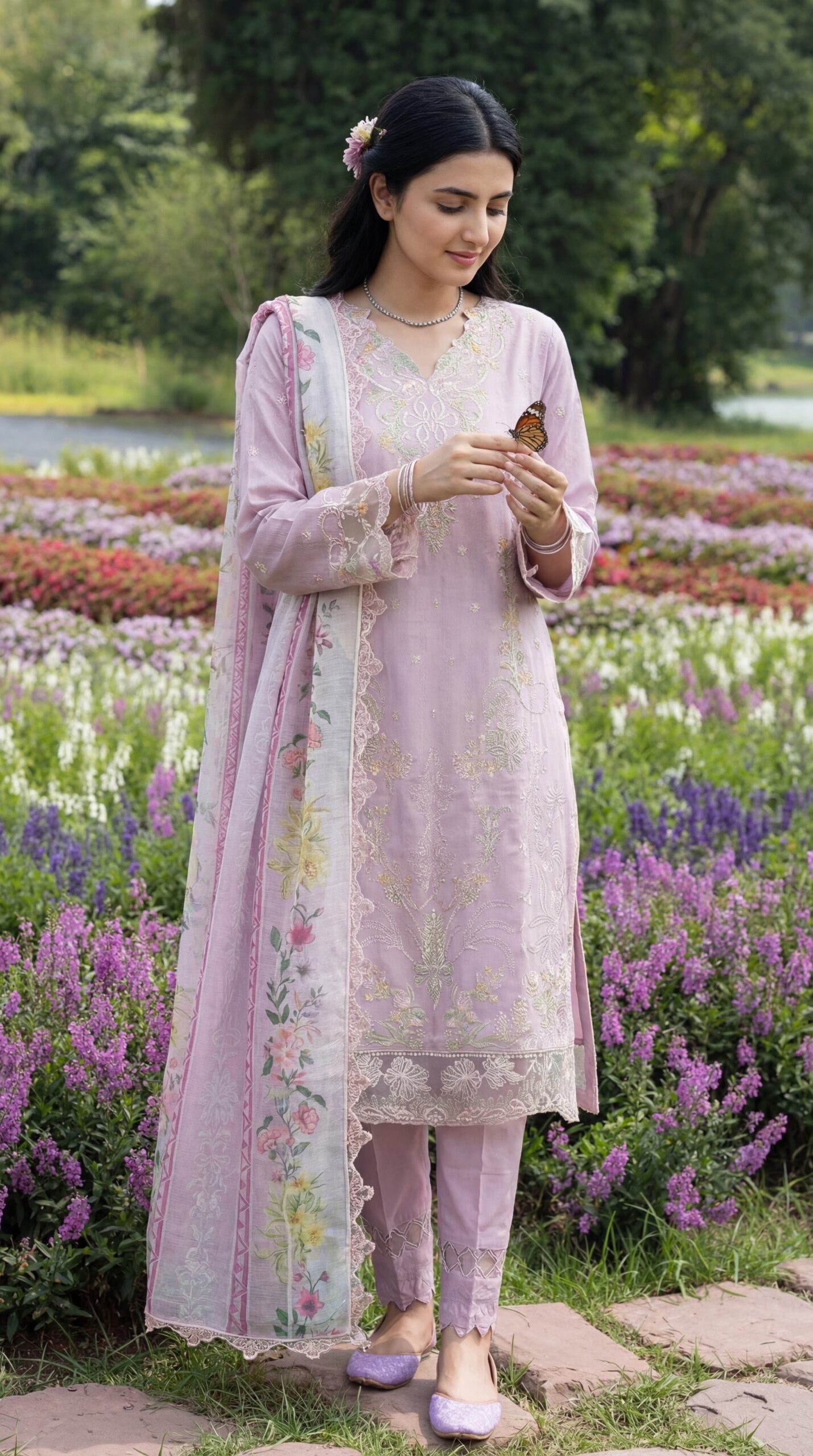 Accompanying this elegant lawn shirt is a matching cotton trouser, ensuring maximum comfort and ease for casual wear and everyday activities. This ensemble also includes a matching lawn dupatta, adding a light and elegant look to this ensemble through its subtle prints and intricate embroidery.