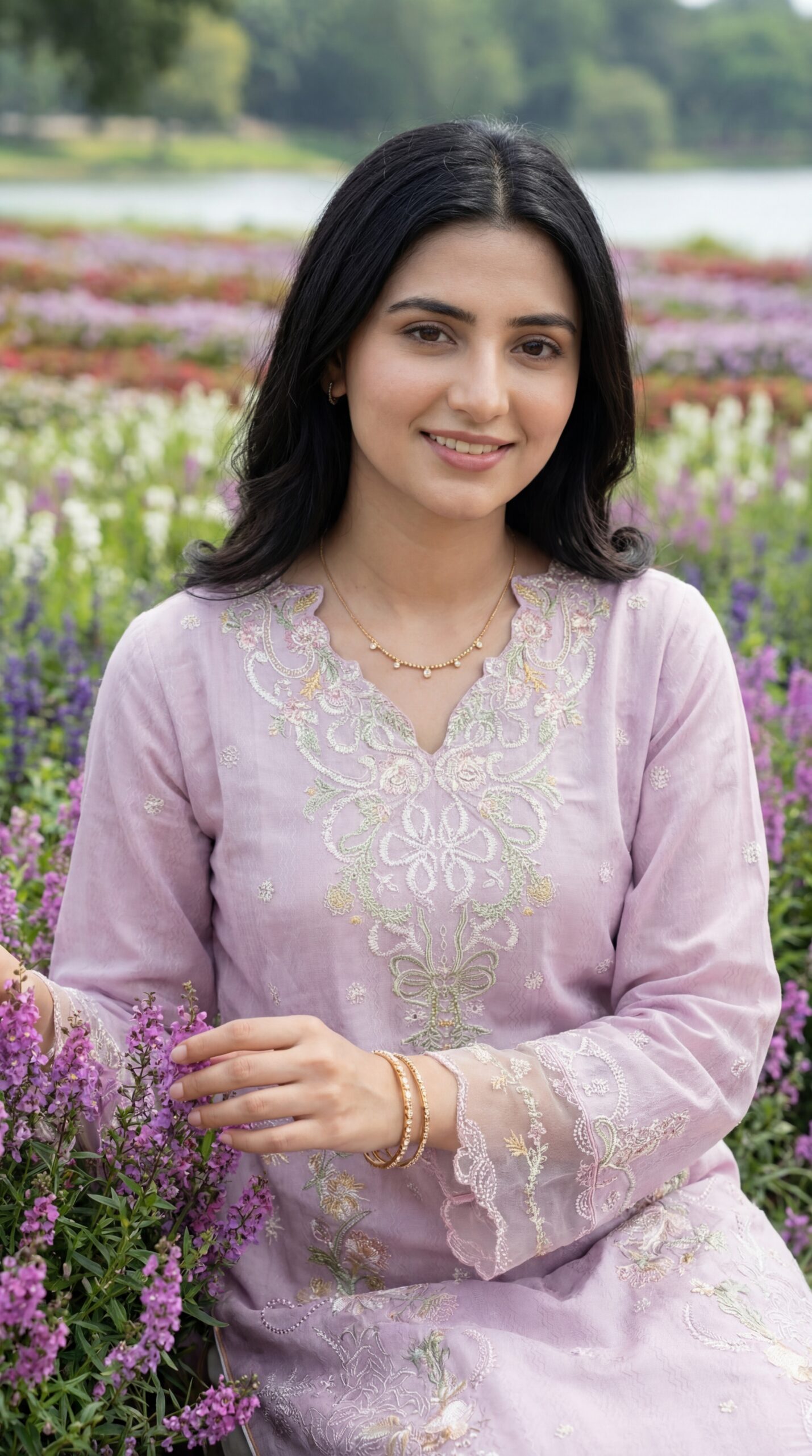 Elevate your style to a new level of ease and sophistication with this stunning lawn ensemble, ideal for the summer season. This elegant shirt features intricate embroidery in soothing pastel shades, adding a beautiful contrast to its soft pink hue. The intricate embroidery on the neck, sleeves, and edges gives a refined and feminine look to this ensemble.