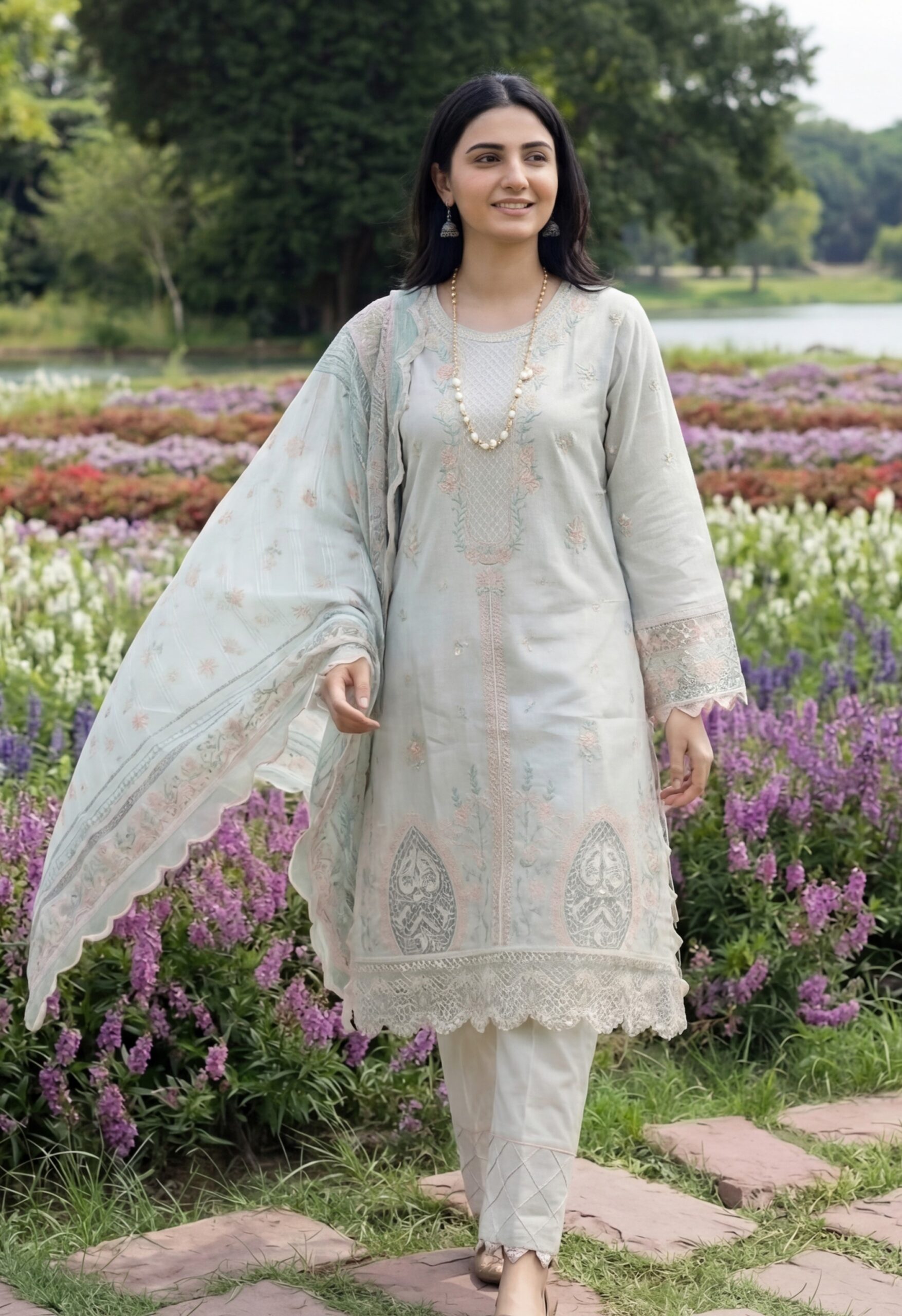 Pearl Grey Embroidered Lawn Unstitched Suit