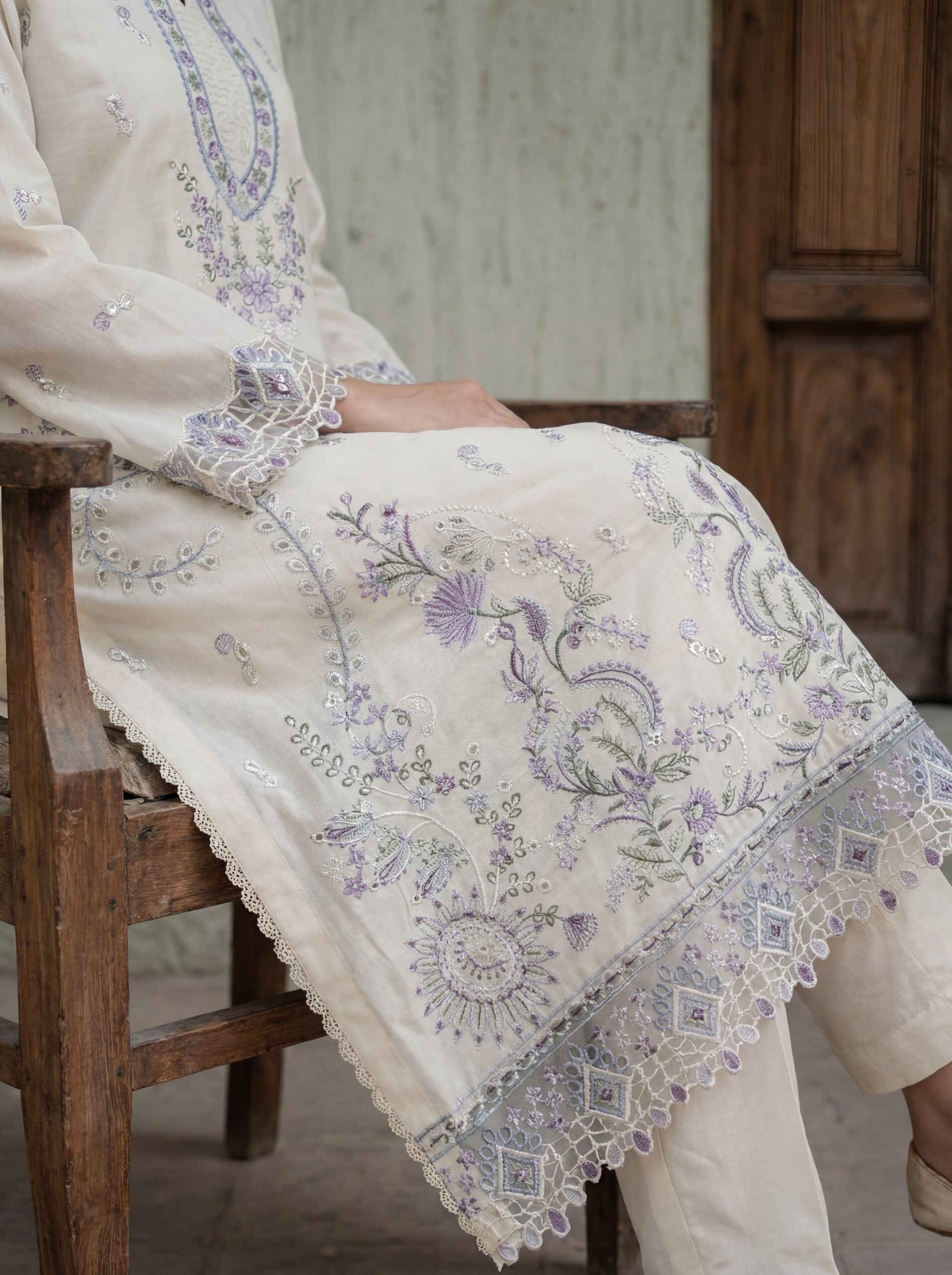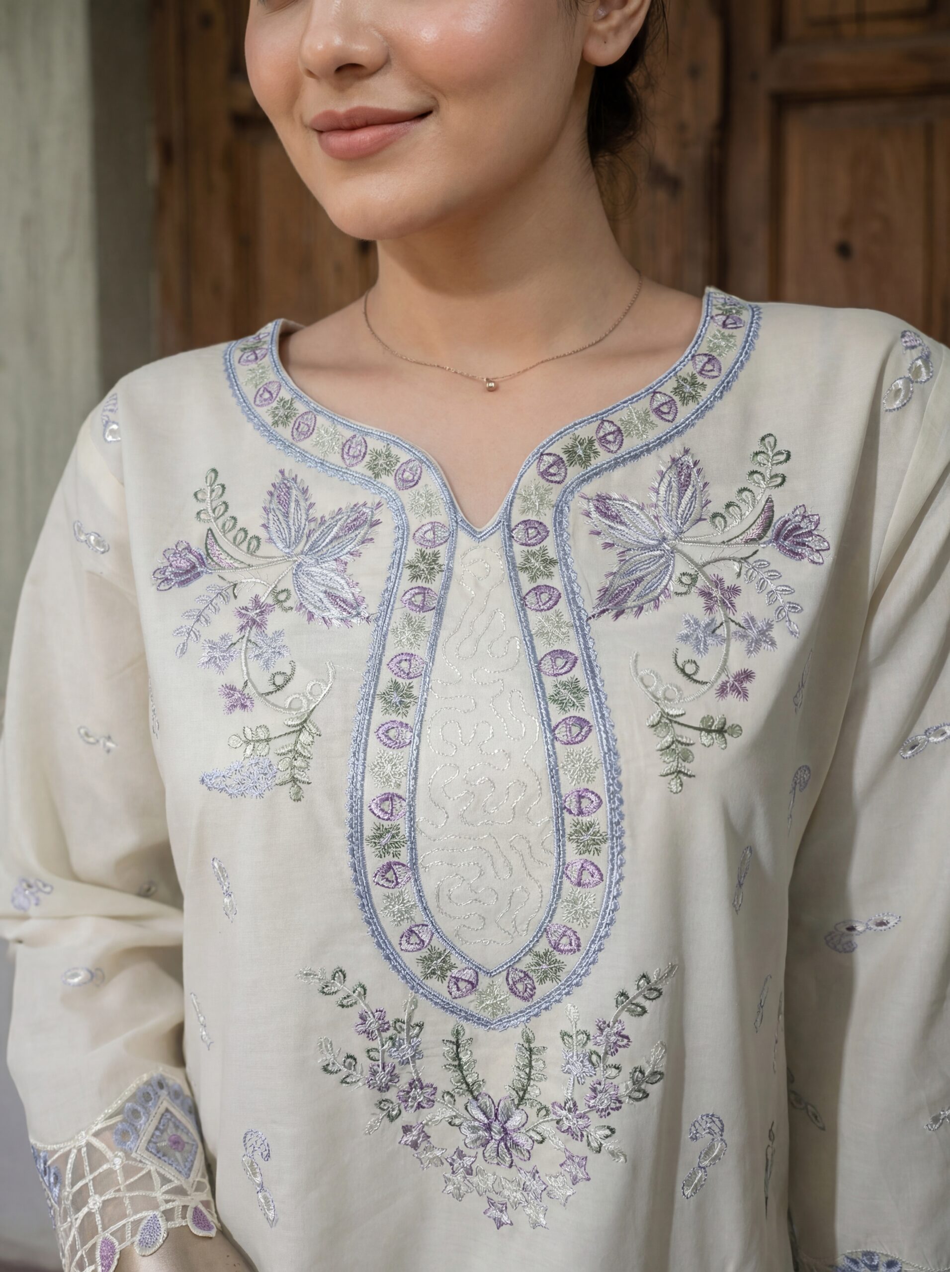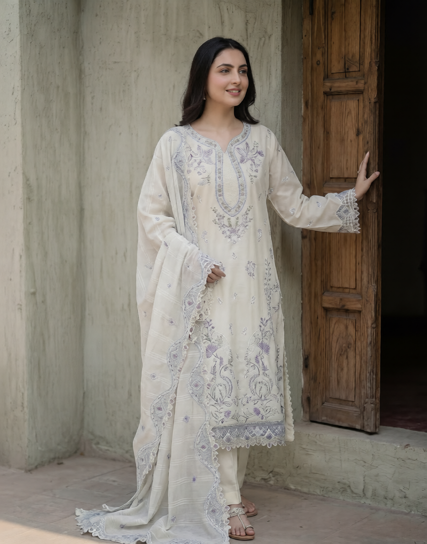 Creamy Ivory Floral Embroidered Lawn Unstitched Suit