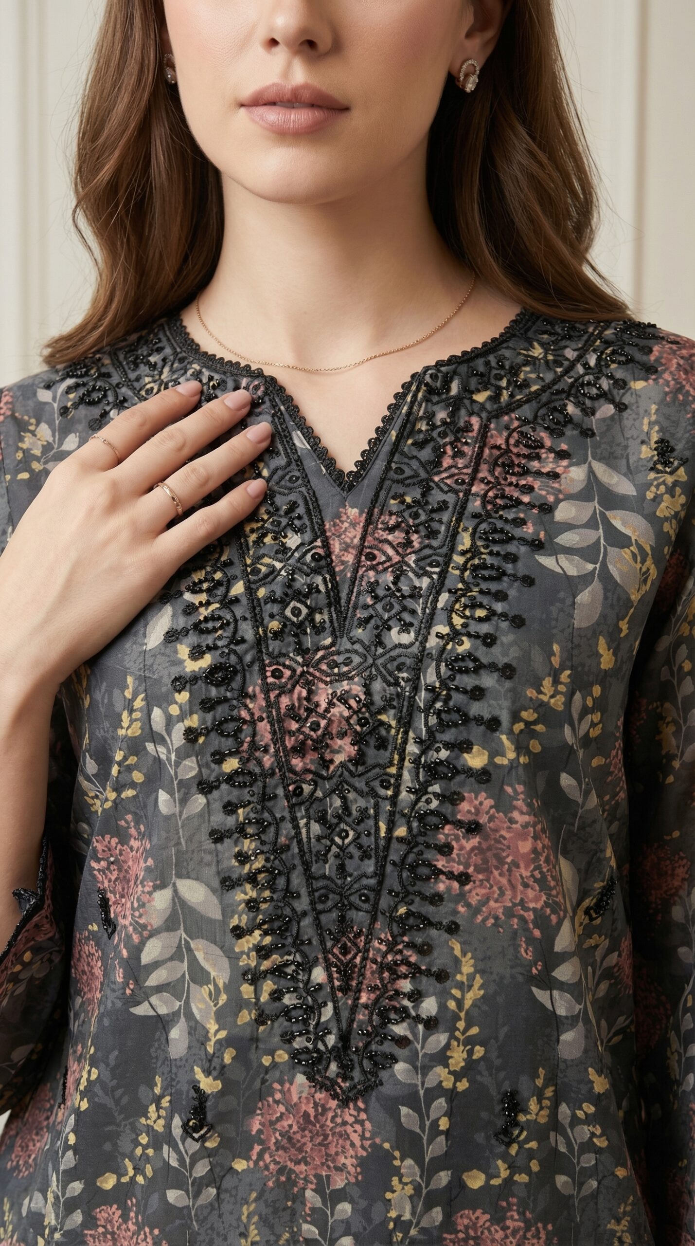 Charcoal Bloom Embroidered Lawn Unstitched Suit