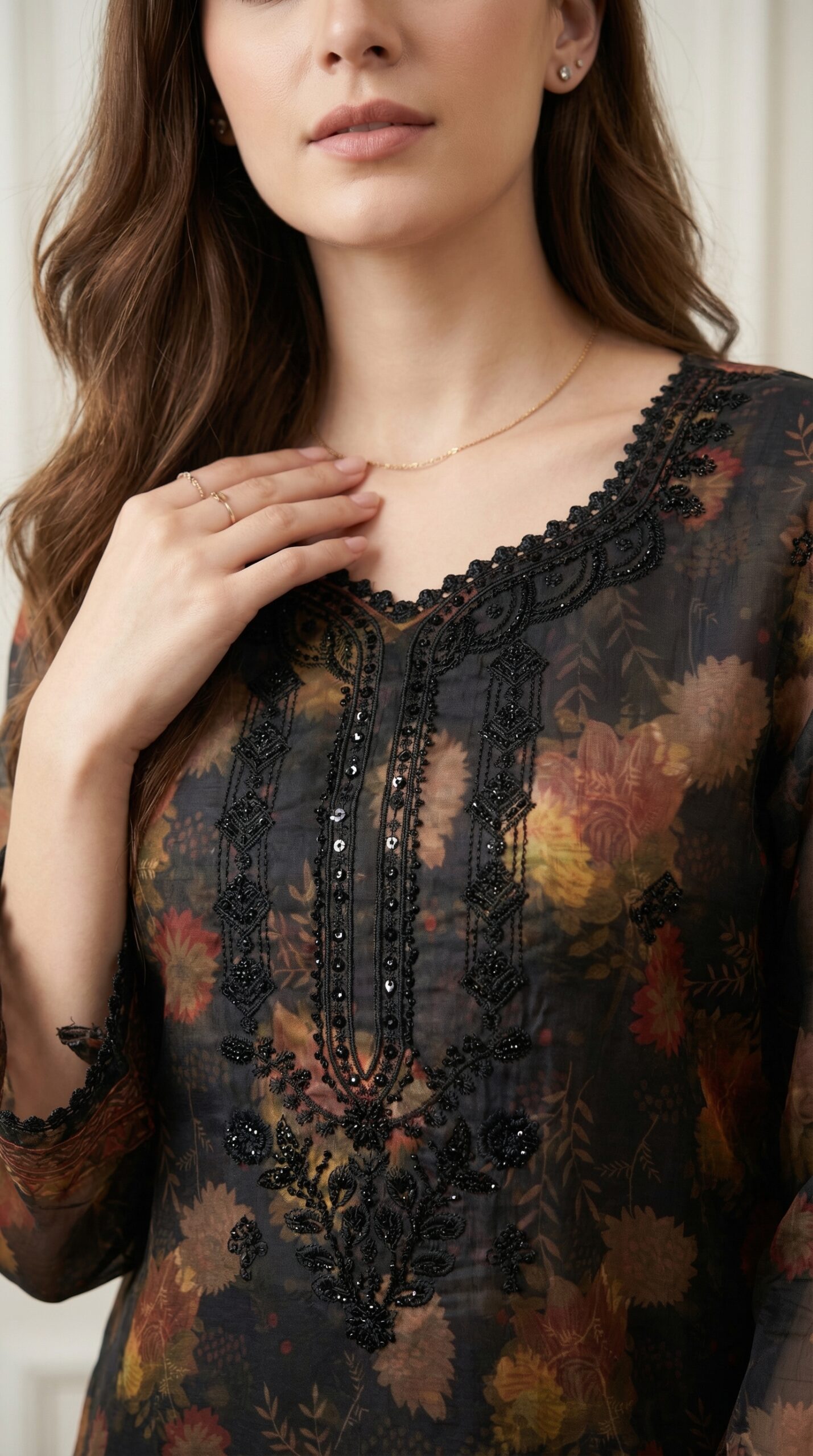 Step into effortless elegance with this beautifully designed Mocha Bloom Unstitched Lawn Suit, perfect for adding warmth and sophistication to your wardrobe. This outfit includes a richly printed lawn shirt in deep mocha shades, along with subtle florishes and detailing for a refined look.