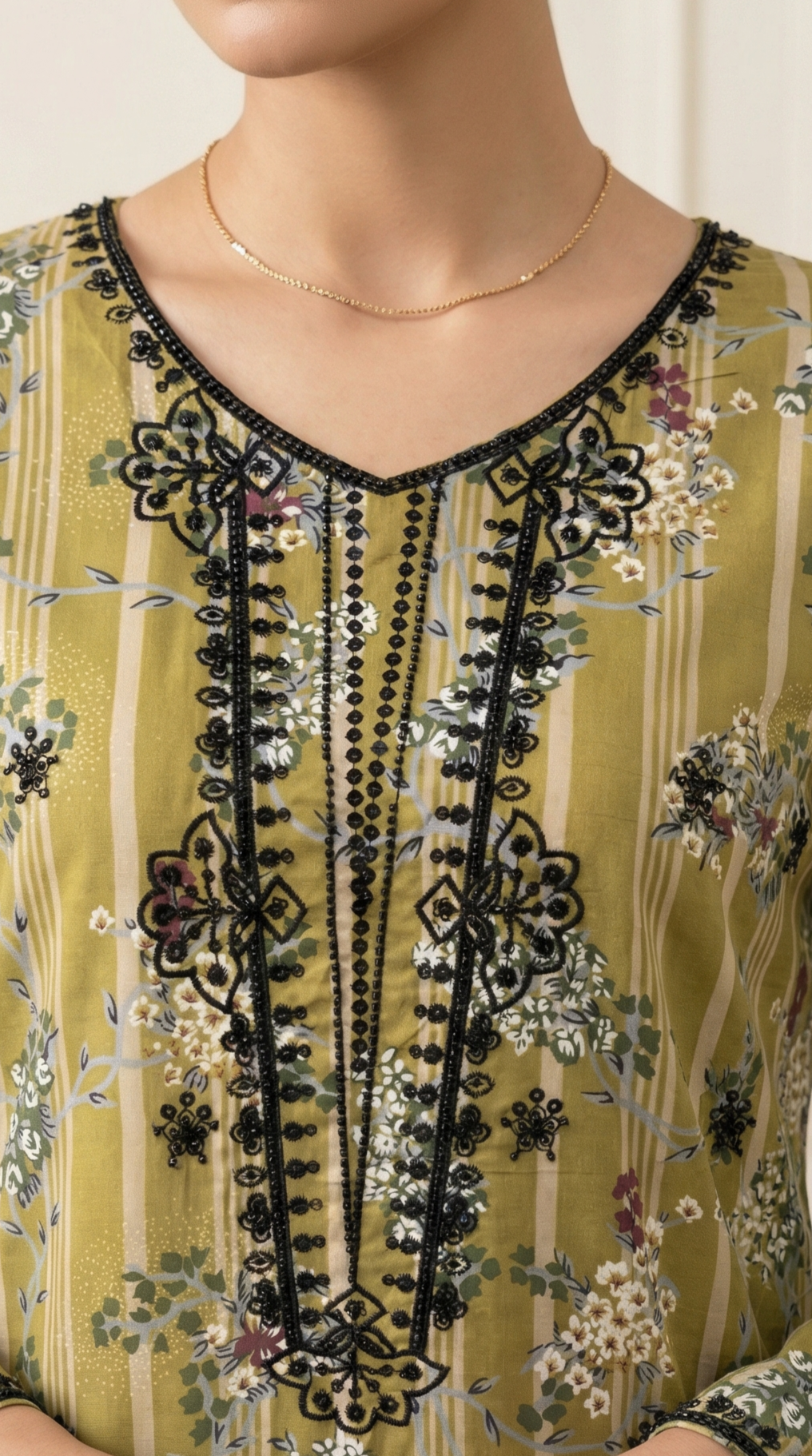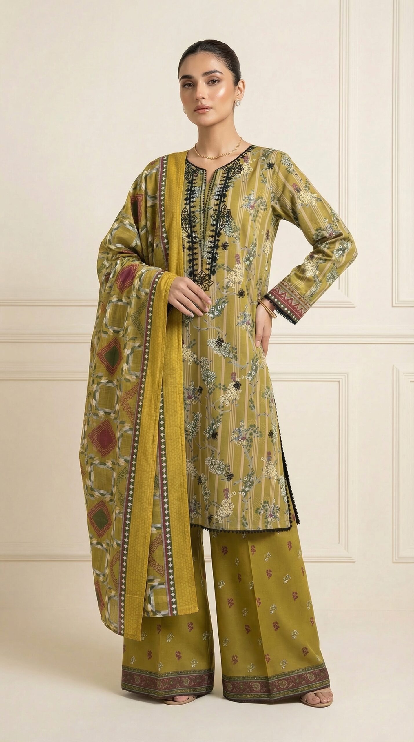 Mustard Olive Embroidered Lawn Unstitched Suit