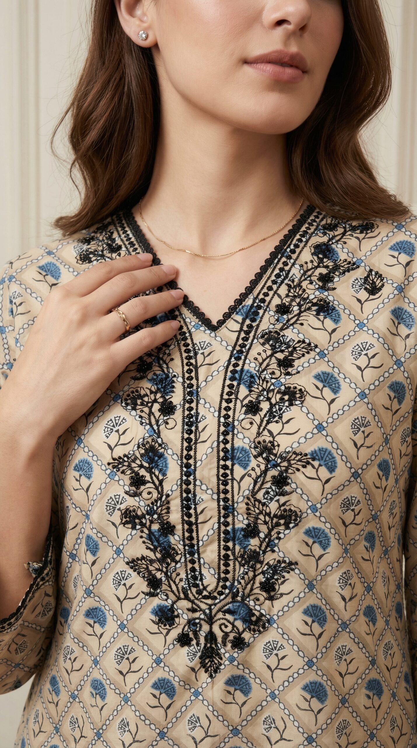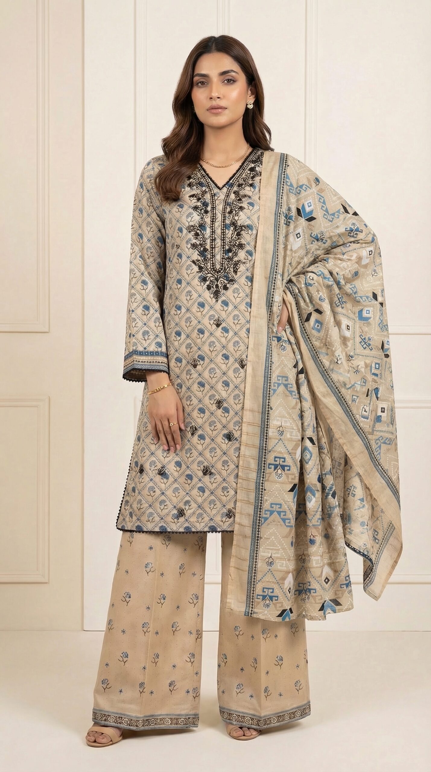 Sand Beige Embroidered Lawn Unstitched Suit