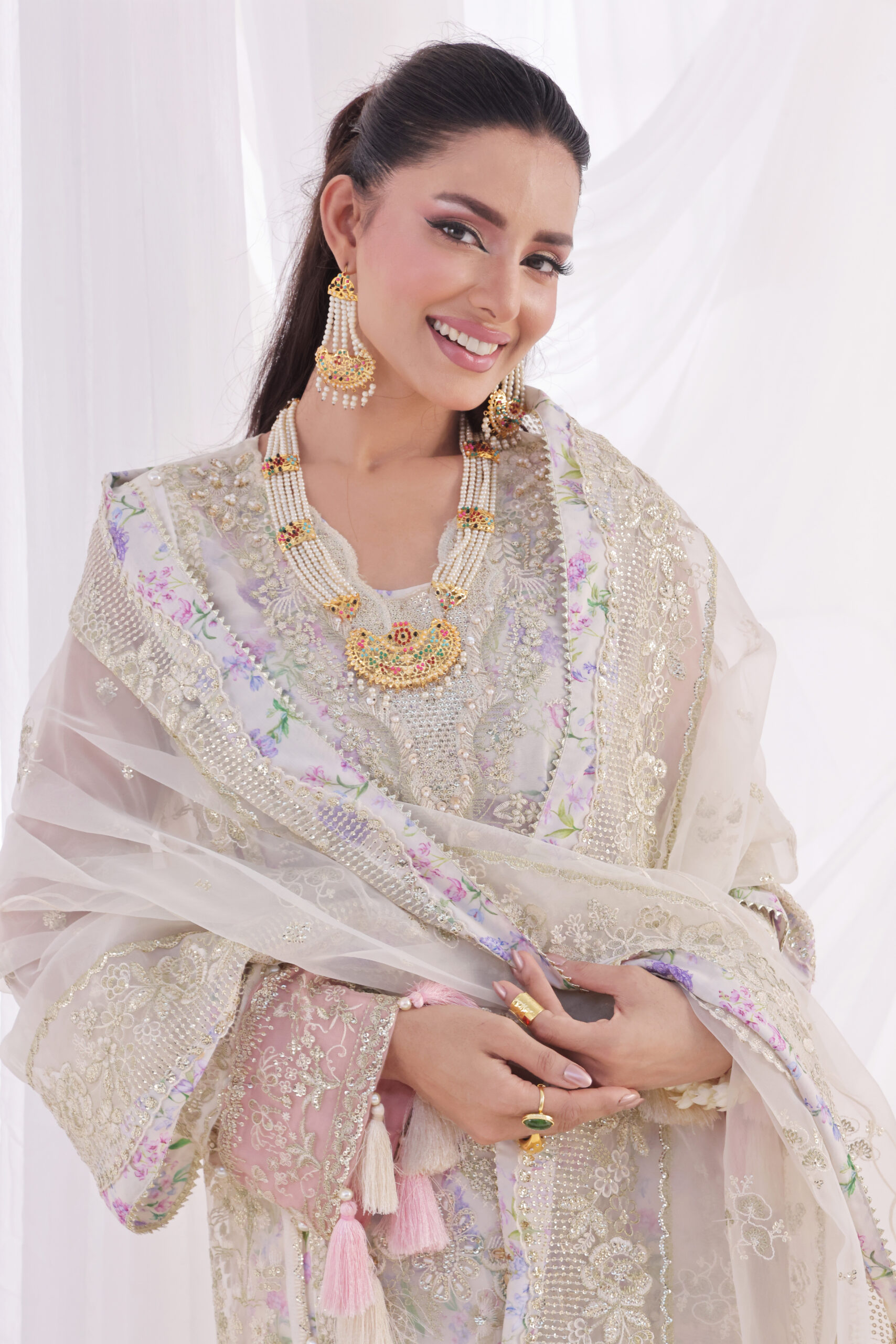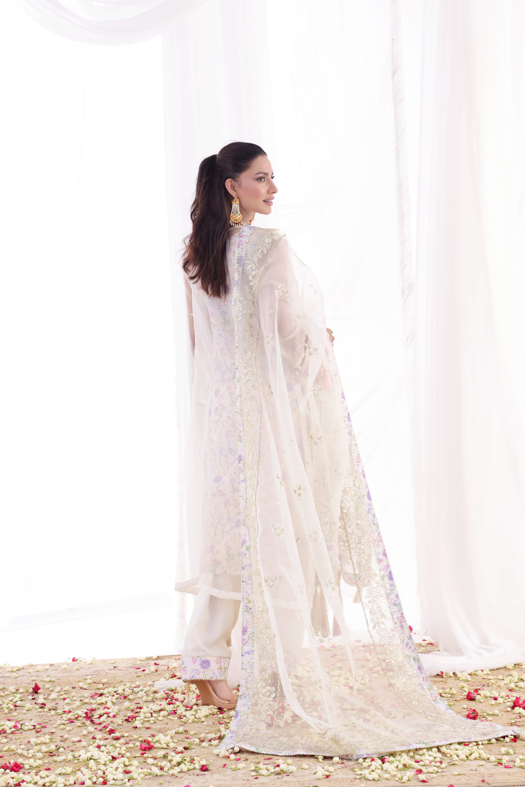 Enter into timeless elegance with this exquisitely crafted unstitched ensemble in a narrative of grace. It includes a shirt woven from sumptuous organza fabric, decorated with intricate embroidery and delicate embellishments that add a soft, ethereal touch to it. This is teamed with a matching organza dupatta, with fine detailing and an elegant finishing-a look both refined and festive.