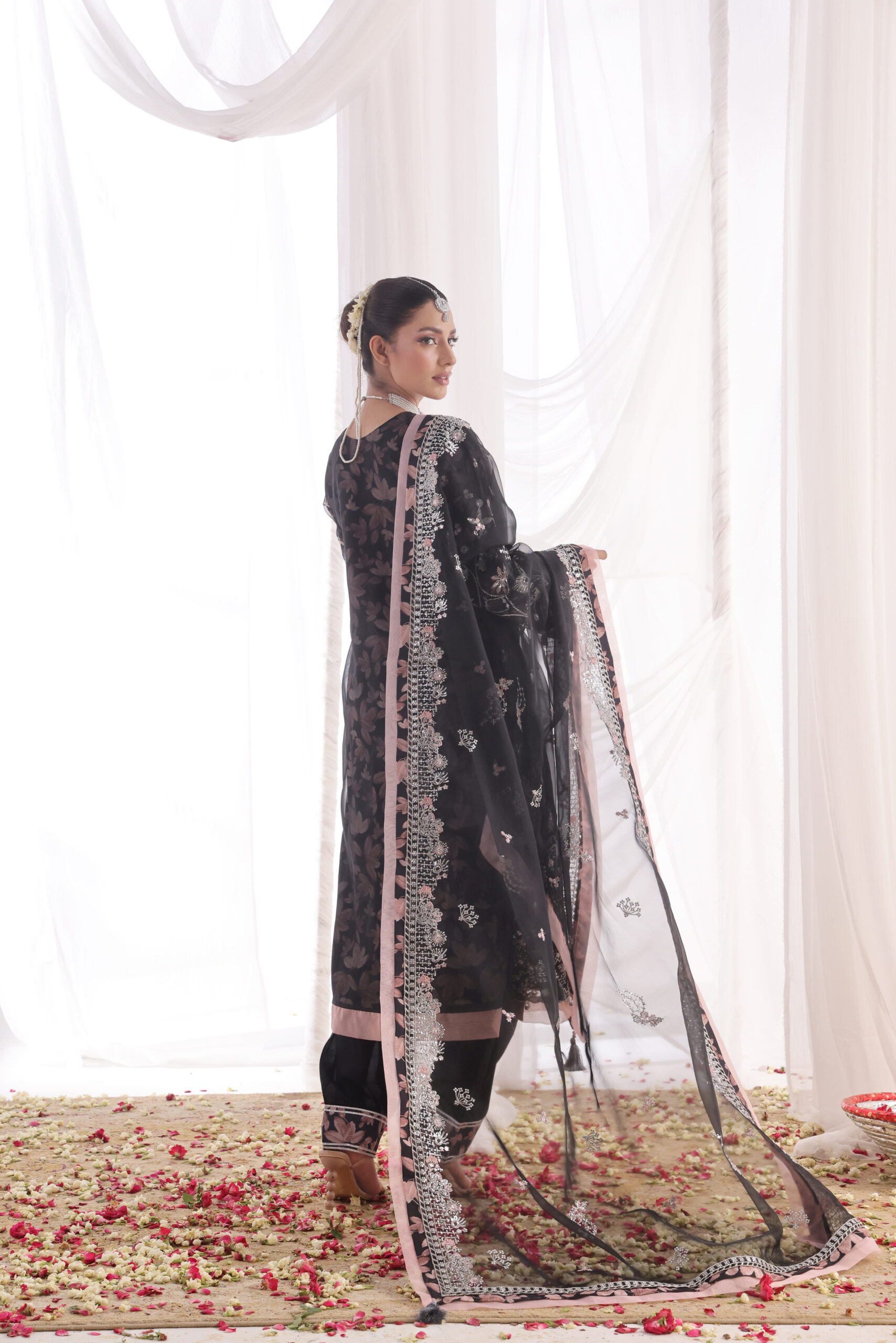 Classic Noir Embroidered Organza Unstitched Suit